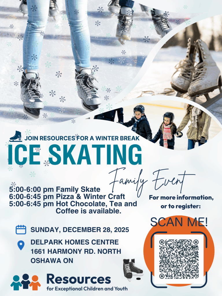 Brought to you by the Resources Family Fund, we are excited to invite all families, friends, and staff of Resources to join us for a family skating session. This event will be taking place on December 28, 2025 from 4:45 p.m. – 6:45 p.m.; with skating from 5:00 – 6:00 p.m.